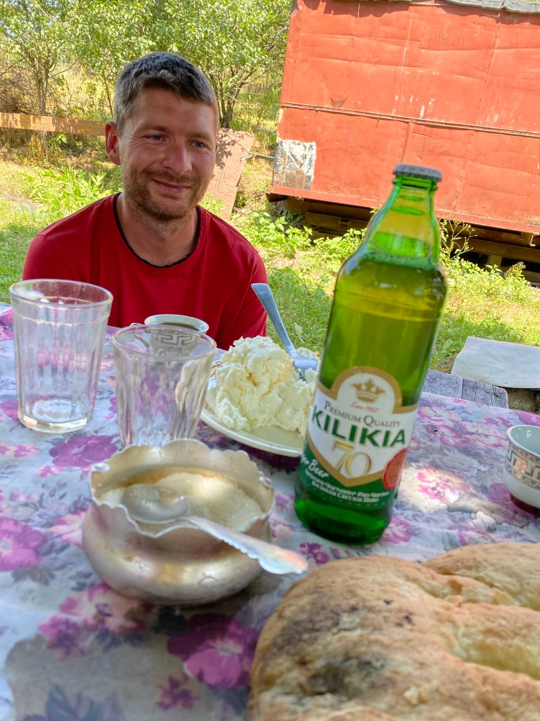Wir sehen viele Häuser, die bei uns nicht als Häuser durchgehen würden. Doch egal wie arm die Menschen sind, immer kommt uns Freundlichkeit und Interesse entgegen. Es wird uns meist mehr gegeben als wir zurück geben können. So essen wir kiloweise geschenktes Obst, Gemüse und Brot, bekommen oft Milch und Joghurt angeboten, etwas Gegrilltes im Lavash gereicht oder einfach ein Gläschen (manchmal sogar eine ganze Flasche) Hochprozentiges. In Armenien wird vor jedem Trunk ein Spruch aufgesagt, meist wird auf das Leben, das Beisammensein, die Liebe und den Frieden getrunken. Oft verstehen wir gar nichts vom Trinkspruch, manchmal muss trotz Sprachhindernissen auch einer von uns ran. Nie fanden wir bisher so einfach und leicht tolle Schlafplätze wie in Armenien. Gemeinschaft wird großgeschrieben und wenn man zufällig am Wochenende an einem beliebten Picknickplatz landet kann es schon mal sein, dass man von früh bis spät von Familie zu Familie wechselt, bis zum Umfallen isst und vor allem trinkt.