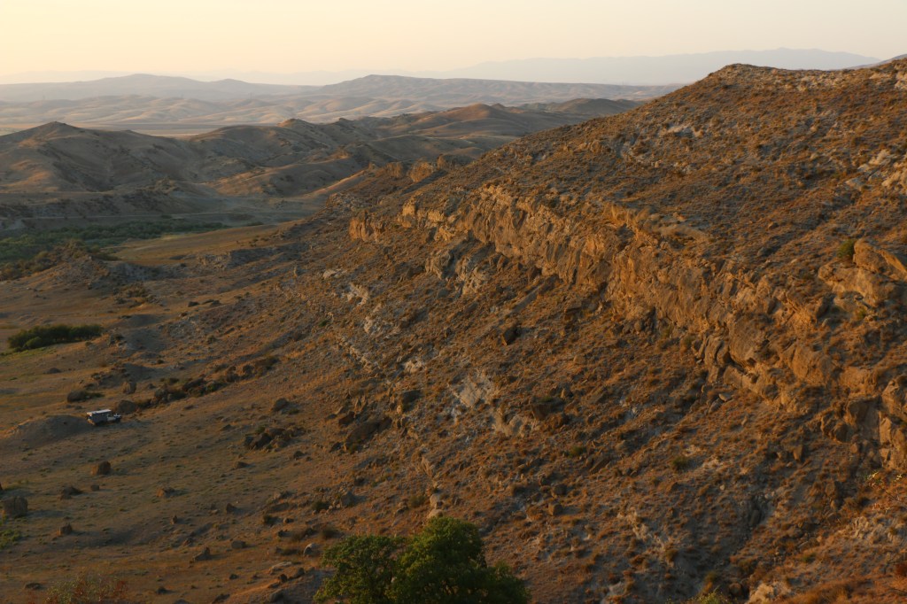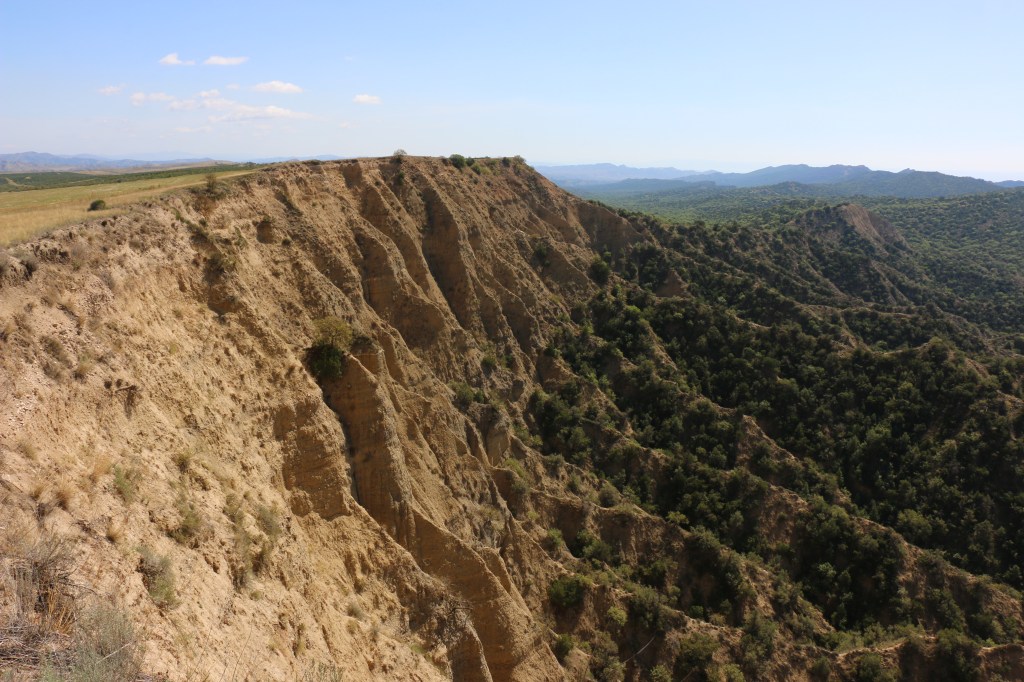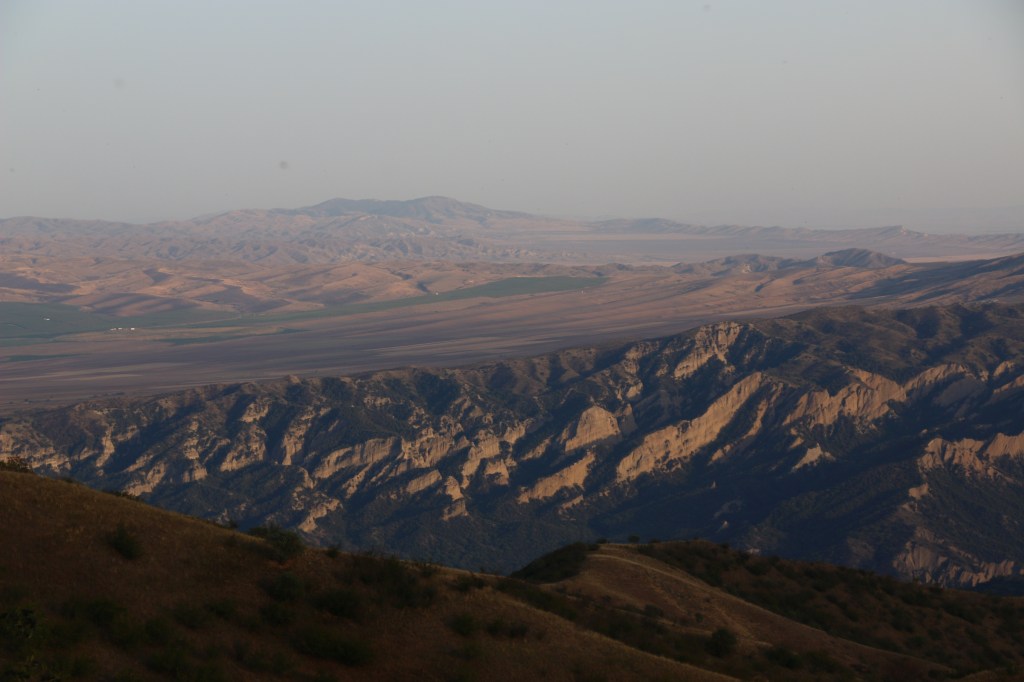 Dieser Nationalpark bietet alles, was man NICHT in Georgien erwartet, bzw. wir nicht erwarteten. Trockene Hitze, einen staubigen Canyon, rollende Hügel, Schwarzerde-Äcker, afrikaähnliche Savannen, Halbwüsten, sowie Felsgebilde, die uns an Kappadokien erinnern. Und das alles mit der Aussicht auf die Viertausender des großen Kaukasus im Hintergrund.