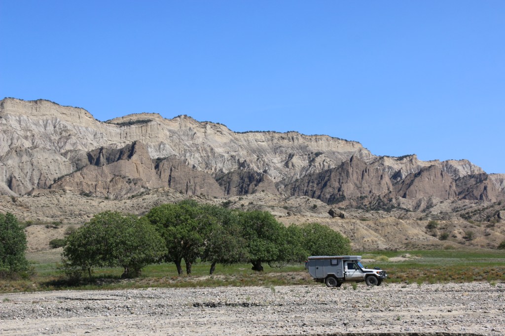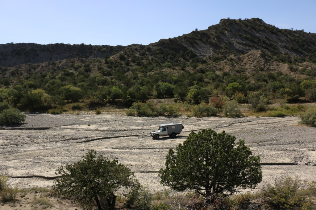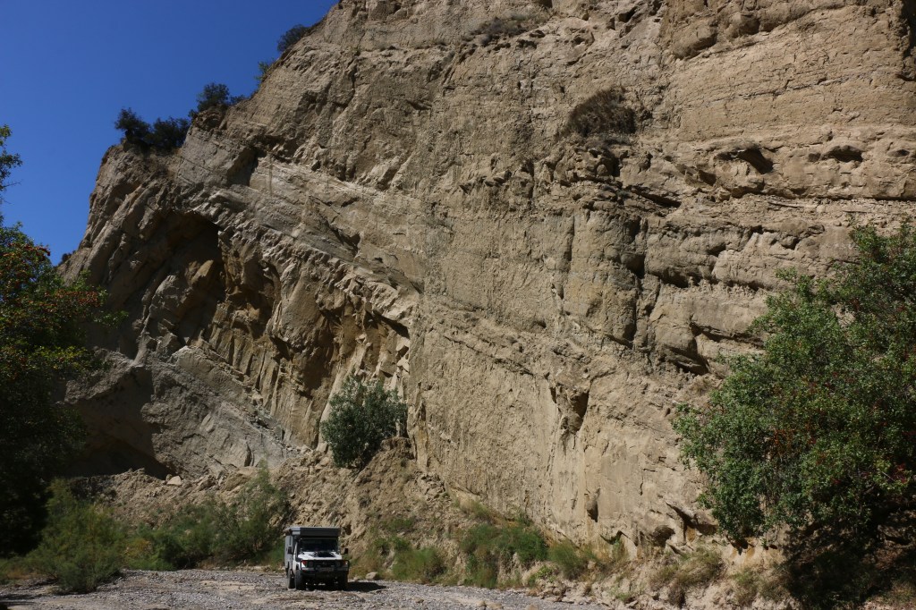 Für den Besuch braucht es eine Berechtigung der Grenzpolizei und ein Ticket aus dem Nationalparkbüro. Wir statten uns für rund fünf Tage mit Essen und Wasser aus und beginnen unsere Tour an einem späten Nachmittag. Gecampt darf nur an ausgeschilderten Plätzen werden. Daher beziehen wir schon bald unser Nachtlager mit Aussicht auf den Canyon und eine Vielzahl von Pistazienbäumen. Es fühlt sich noch so richtig nach Hochsommer an, die Temperatur fällt nachts nicht unter 25 Grad. Es wird uns bewusst, dass dies vielleicht unsere letzten sommerlichen Tage in Georgien sein könnten.