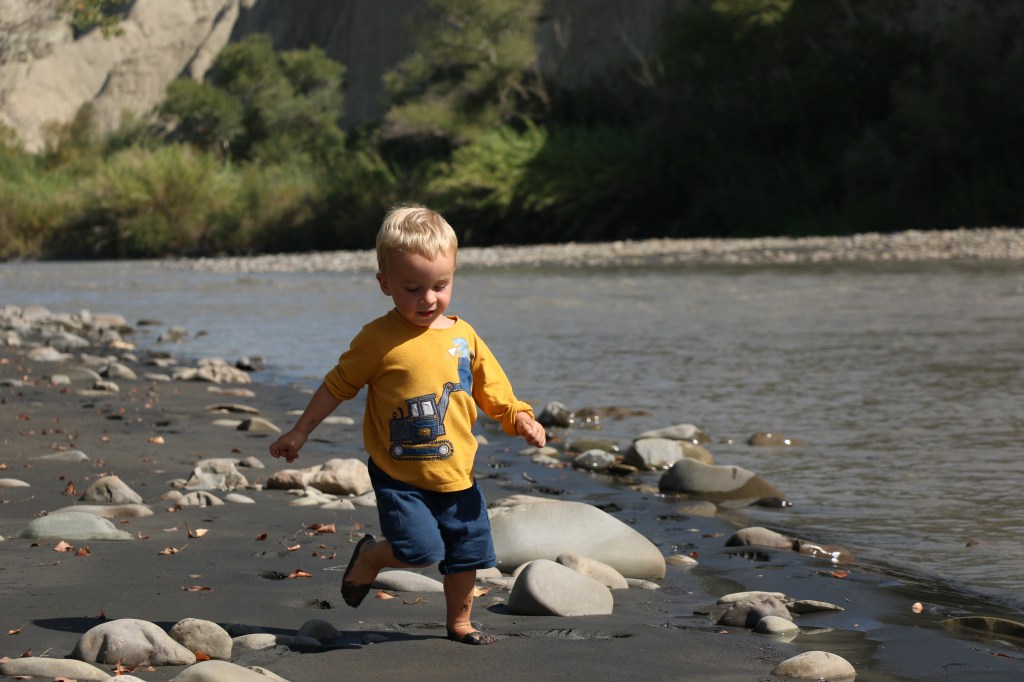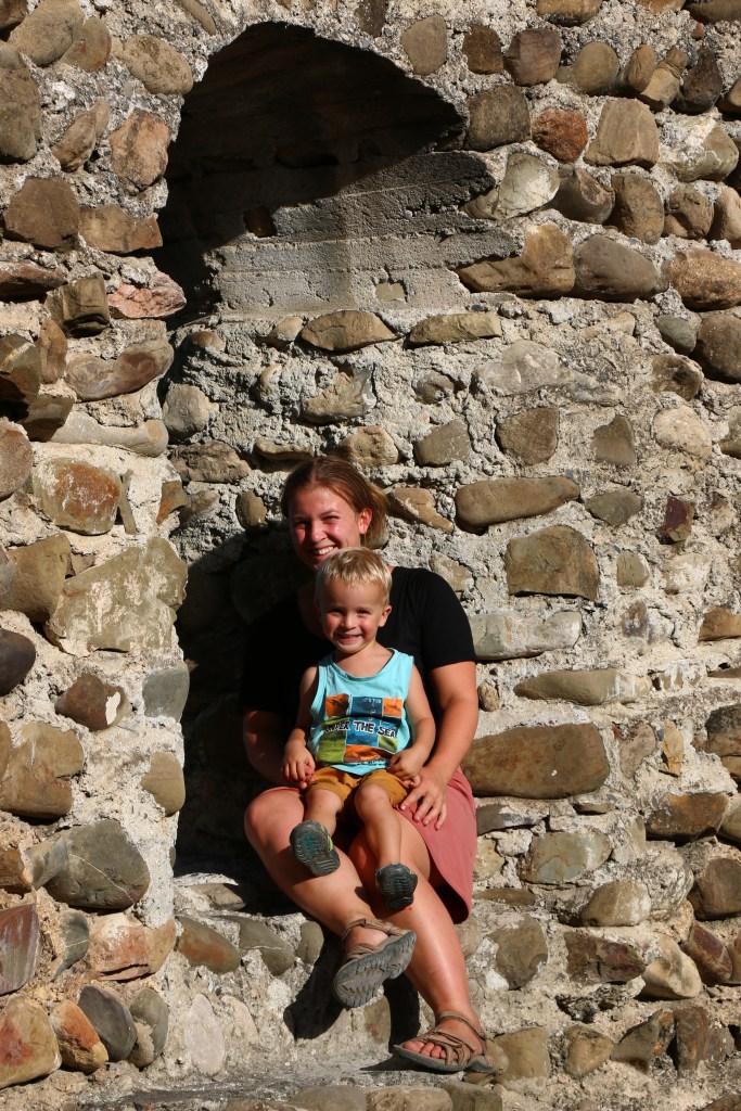 Wir verbringen vier Nächte im Vashlovani Nationalpark. Unsere tierischen Begegnungen beschränken sich auf ein paar Kühe und Schmetterlinge, einige Katzen und lästige, beißende Fliegen am Camp des Grenzflusses. Die menschlichen Begegnungen sind dafür umso herzlicher. Denn alle Männer an den verschiedenen Checkpoints haben eine riesen Freude mit Leo und nehmen sich, neben den Kontrollen, Zeit für einen kurzen Plausch. Immer inkl. Abschiedsgeschenken in Form von Weintrauben, Äpfeln, Zwetschgen oder Schokolade.