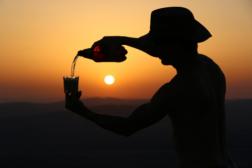 Dafür bringt der nächste Morgen zwar keine landschaftliche, aber umso lustigere Überraschung. Denn als wir unseren Schlafplatz in den Hügeln nahe Sighnaghi verlassen, kreuzt ein älterer Mann unseren Weg. Er geht gerade mit seiner Kuh an der Leine zum Einkaufen, macht er uns mit Händen und Füßen klar. Das ist praktisch, dann ist sie zu Hause wieder satt und er kann ihr etwas auf den Rücken hängen. Schnell ist der Schnaps aus seinem Rucksack ausgepackt und ich darf um neun Uhr morgens ein gut gefülltes Gläschen mit ihm heben. Voller Freude über unsere Zusammenkunft schenkt er mir danach die ganze Flasche vom selbstgemachten Hochprozentigem. Und das Glas gleich noch dazu. Im Gegenzug finden wir zum Glück noch zwei Bierchen im Kühlschrank, die rasch in den Rucksack wandern. Ja, auch das ist Georgien. Alkohol ist hier mindestens so präsent wie in Armenien und wir dürfen im Laufe der eineinhalb Monate in diesem Land einige Male das Angebot eines „Chacha“ am Vormittag ablehnen. Die meist vorhandene Sprachbarriere ist bei einer Einladung kein Hindernis, denn mit dem Fingerzeig auf die Halsschlagader und einem kippenden Glas in den Mund, kennt man sich sofort aus, was das Gegenüber gerade anbieten möchte.