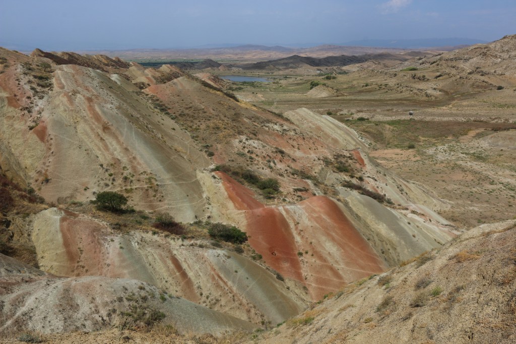 Nach dem Besuch des wirklich schönen und noch bewohnten David Gareja Klosters, tuckern wir Richtung „rote Berge“, vorbei an Herden von Kühen, Schafen und zwei Landschildkröten. Unser Ziel am kleinen Stausee bietet uns am nächsten Tag einen tollen Ausgangspunkt für eine Wanderung durch die beeindruckenden umliegenden Berge, deren Gestein in verschiedensten (Rot-)Tönen leuchtet. Wir fühlen uns wieder ganz woanders, aber definitiv nicht wie in Georgien.