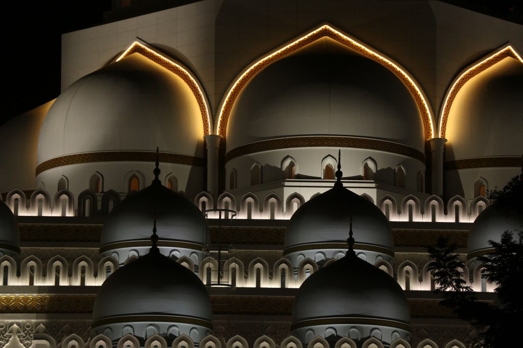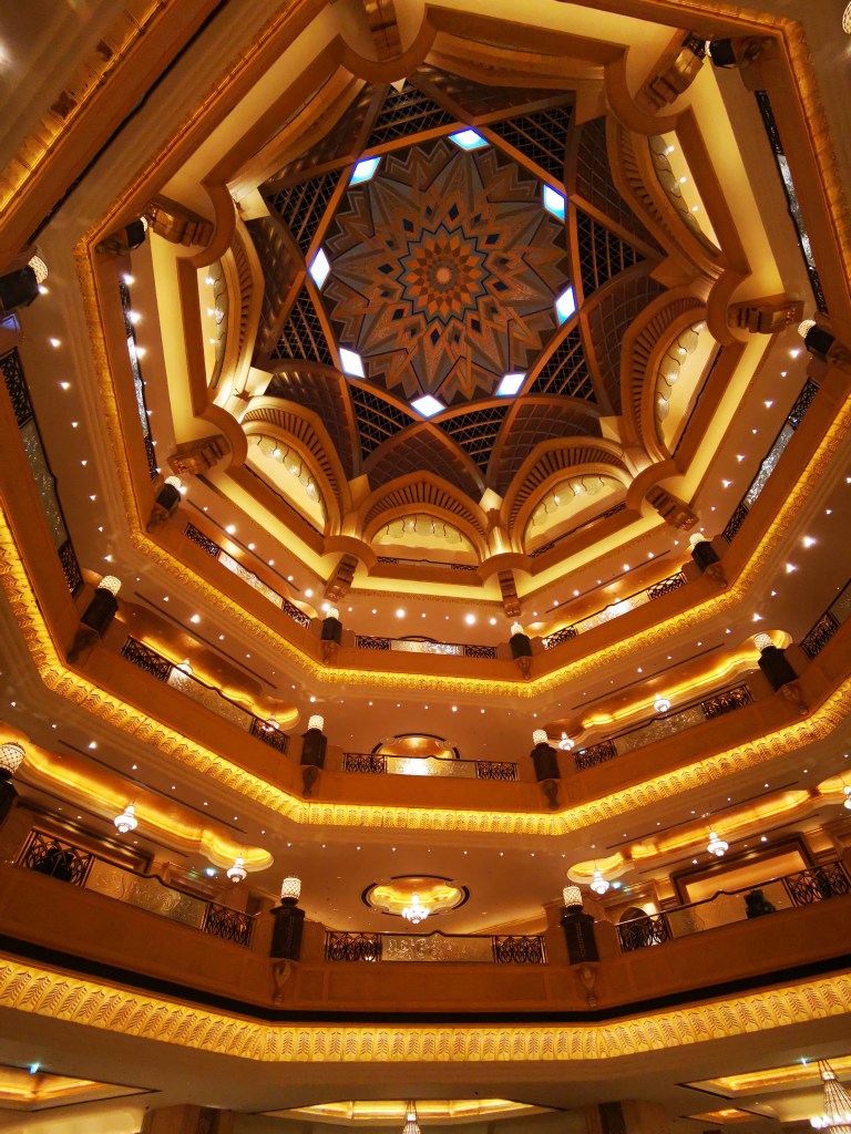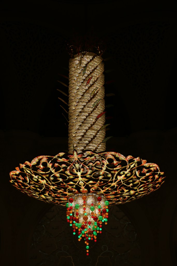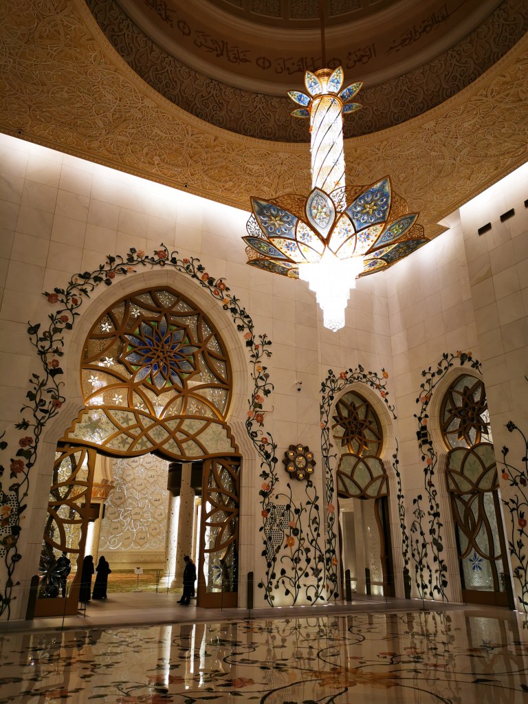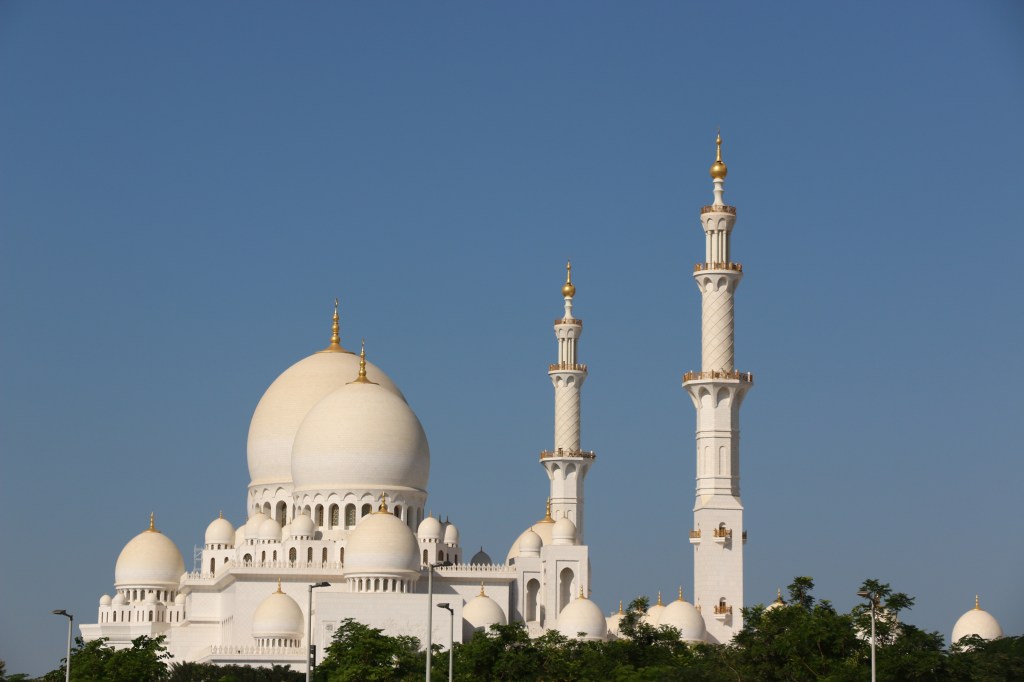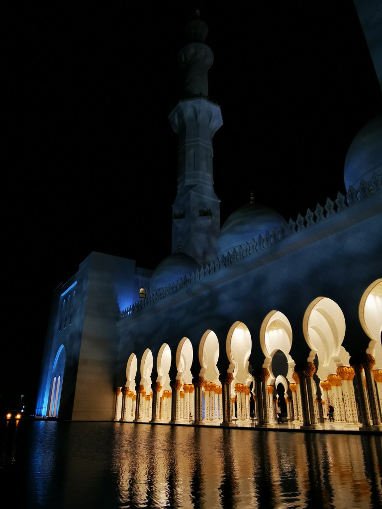 Die große weiße Moschee von Abu Dhabi beeindruckt schon von Weitem – egal ob bei Tag oder Nacht. Sie war der Traum des verstorbenen Sheikh Emir Zayid bin Sultan. Und dieser Traum wurde im Jahr 2007 realisiert. Aber so richtig. Sie ist die größte Moschee der Emirate und eine der Größten der Welt. Wir verirren uns auf dem weitläufigem Gelände vor dem riesigen schneeweißen Gebäude schon kurz nach der Ankunft. Für Leo wird das Highlight wohl die Fahrt mit dem „Taxi“ – einer Art Golf Caddy – bleiben. Johannes und mich beeindruckt die Größe der Moschee und die Erkenntnis, dass uns das ein bisschen zu groß und opulent ist.
