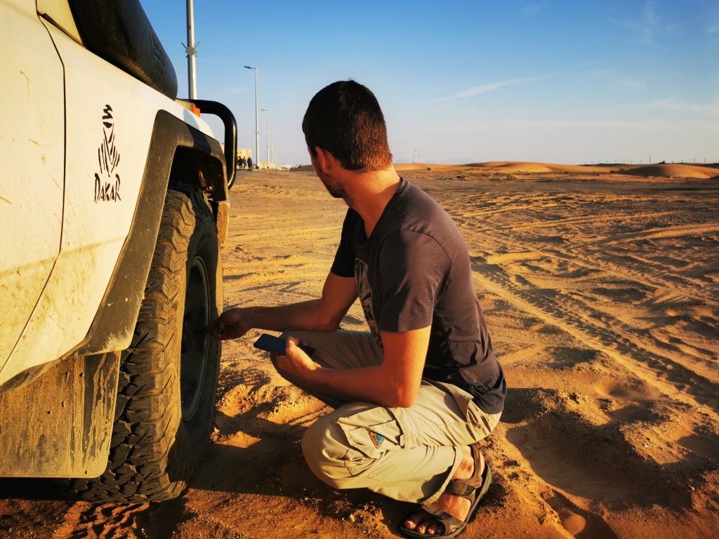 Expatriates werden sie genannt, die Gastarbeiter*innen. Die Menschen, die die Emirate so wie sie sind – unserer Meinung nach – am Leben erhalten. Wir haben richtig schöne Begegnungen mit den Expatriates, die hier rund 90% der Bevölkerung ausmachen und unter anderem aus Pakistan, Indien, Bangladesch und Südostasien kommen. Sie arbeiten. Und arbeiten. Um Geld nach Hause zu schicken oder im besten Fall ihre Familie herzuholen und Karriere zu machen. Wir treffen in Abu Dhabi auf Asim aus Pakistan. Er ist so begeistert von unserem Schneckenhaus, dass er uns kurzerhand am Parkplatz der Marine Mall einen komplett kostenlosen, offiziellen Übernachtungsplatz organisiert. Wir sind nämlich in der Stadt immer etwas gebunden, da wir durch das Aufklappen des Parallelhubdaches sofort ersichtlich campen und nicht „parken“. Asim ist einer der fröhlichsten Menschen, die ich auf der Reise bisher getroffen habe, obwohl er zwölf Stunden Schichten als Parkplatzwächter schiebt und zusätzlich rund drei Stunden pro Tag im Bus sitzt. Seit zwei Jahren ist er hier und besucht nun endlich im kommenden Frühjahr für zwei Monate zum ersten Mal seine Familie. Sein Vater ist krank und auch seiner Frau geht es gesundheitlich nicht so gut. Hier verdient er genug Geld um ihnen die medizinische Versorgung zu finanzieren. Sein Sohn ist noch im Vorschulalter. Asim ist einer von Millionen Menschen in den Emiraten die jeden Tag hart arbeiten, vielleicht zum Teil ganz gut Geld verdienen, aber vor allem oft ihre Familien in ihren Heimatländern dafür zurück lassen müssen. Wenigstens hat er viele Freunde hier, sagt er.
