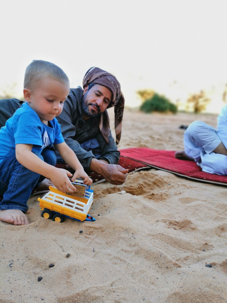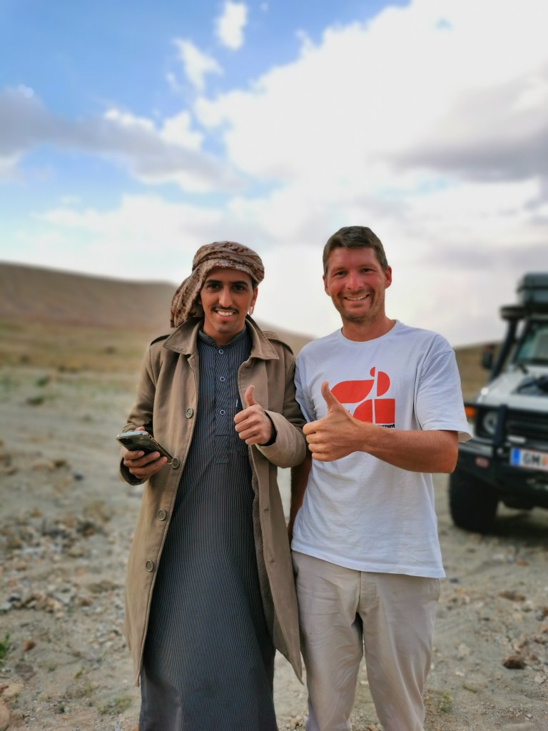 Was uns (wieder einmal) am meisten prägt sind die Menschen. Für uns macht es keinen Unterschied ob wir in der Stadt oder am Land sind, ob gerade eine Frau oder ein Mann mit uns spricht. Egal ob Expatriates oder Einheimische, wir fühlen uns immer willkommen. Auch wenn Kritik an der noch durchaus repressiven Regierung berechtigt und durchaus notwendig ist, darf man die Menschen die hier leben nicht vergessen. Wir sind so dankbar für alle die wir auf unserem Weg quer durch das Land kennenlernen dürfen. Es sind zu Viele, um sie hier alle aufzuzählen. Da ist Abdullah mit seinem Sohn Khalil und seinen Angestellten, der uns auf seiner Farm campen ließ, uns mit Essen vesorgte und den wir gefühlt alles fragen konnten. Ahmed, der uns seine Stadt und seinen saudischen Alltag zeigte. Hamad, der sich so viel Zeit in seinem Museum für uns nahm und sogar traditionell einkleidete. Vaheed, der uns für einen Artikel interviewte, Samara die uns in ihre moderne Welt einlud. Tamir und Bander mit ihren Freunden, die uns in der Wüste in ihre Gemeinschaft aufnahmen und Fisal der uns einfach eines seiner Hotelzimmer am Meer zur Verfügung stellte. Sie und noch viele andere machen unsere Reise durch ihr Land zu einem unvergesslichen Erleben arabischer Gastfreundschaft zwischen Tradition und Moderne.