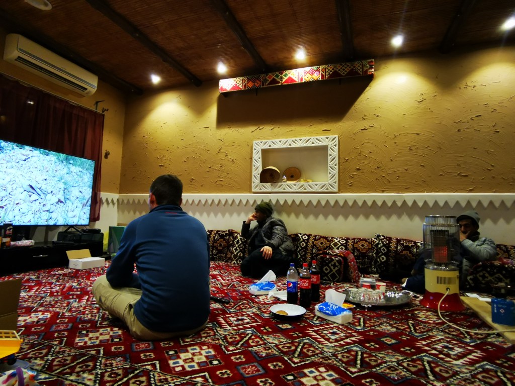 Was wir bereits nach zwei Wochen in diesem unglaublich großen Land wissen: Die arabische Gastfreundschaft erlebt für uns hier ihren Höhepunkt. Wir können uns vor den Fragen ob es uns gut geht und wir etwas brauchen manchmal gar nicht retten. Unser Konsum an arabischem Kaffee, Tee und Datteln steigt ins Unermessliche und wir wissen nicht mehr wie oft wir schon zum Essen eingeladen wurden. „Zum Essen einladen“ bedeutet hier nicht unbedingt, dass ein Einheimischer dich zum gemeinsamen Mahl einlädt. Mindestens genauso oft wird einfach im Restaurant unsere Bestellung bezahlt. Von einem Fremden. Teilweise bekommen wir den Einladenden gar nicht zu Gesicht, oder er begründet seine Einladung nur kurz mit: „Welcome to Saudi Arabia“