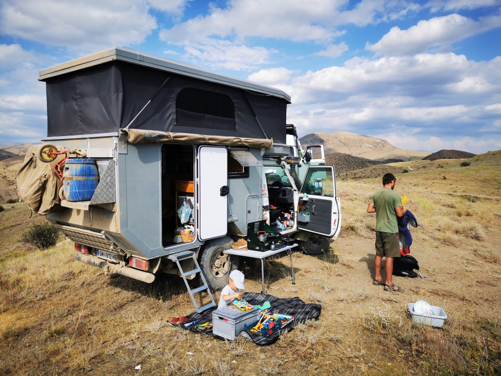Dass wir den Pick Up haben ist Leo zu verdanken, denn ohne unseren Sohn würden wir bei Regen und kaltem Wetter unter der Markise oder im Dachzelt noch ab und an kalte Füße bekommen.